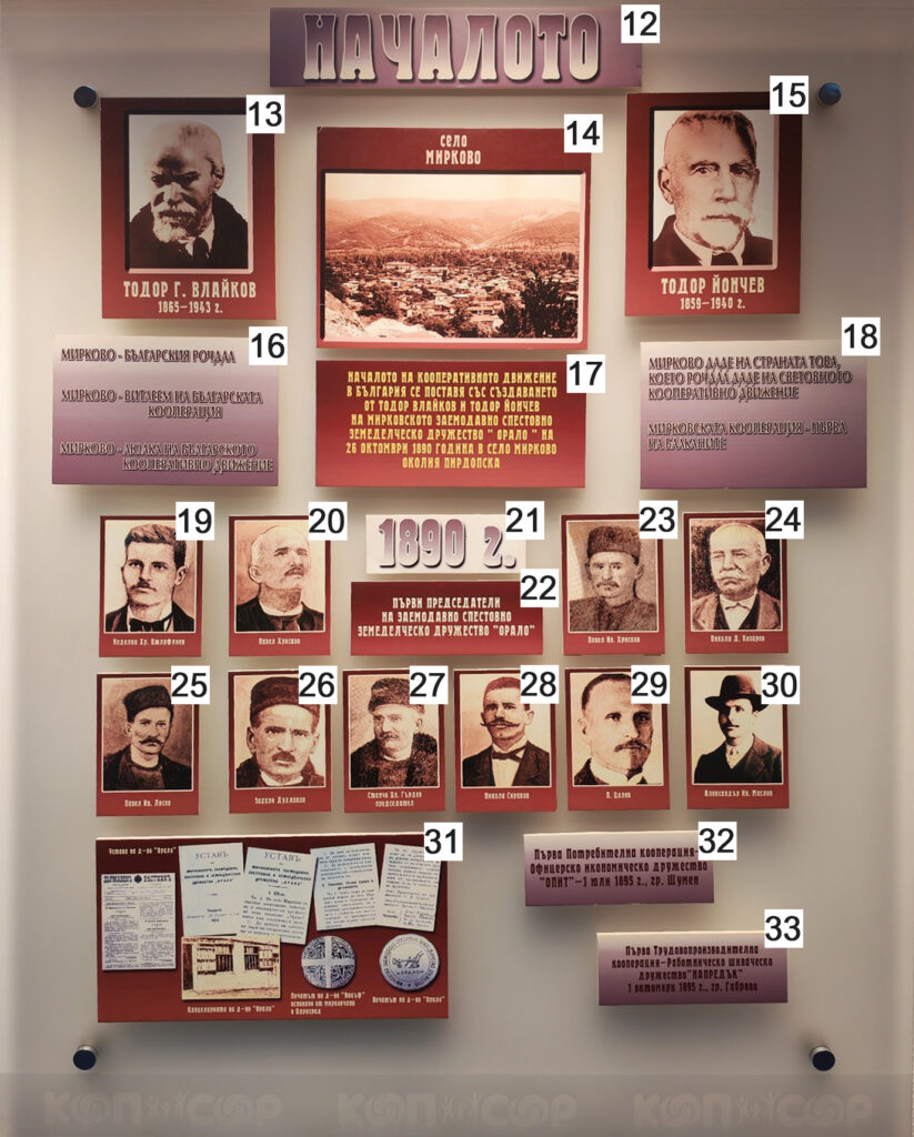 17. The beginning of the cooperative movement in Bulgaria was laid with the establishment by Todor Vlaykov and Todor Yonchev of Mirkovo lending and savings agricultural society “Oralo” on 26 october 1890 in Mirkovo village, Pirdop district